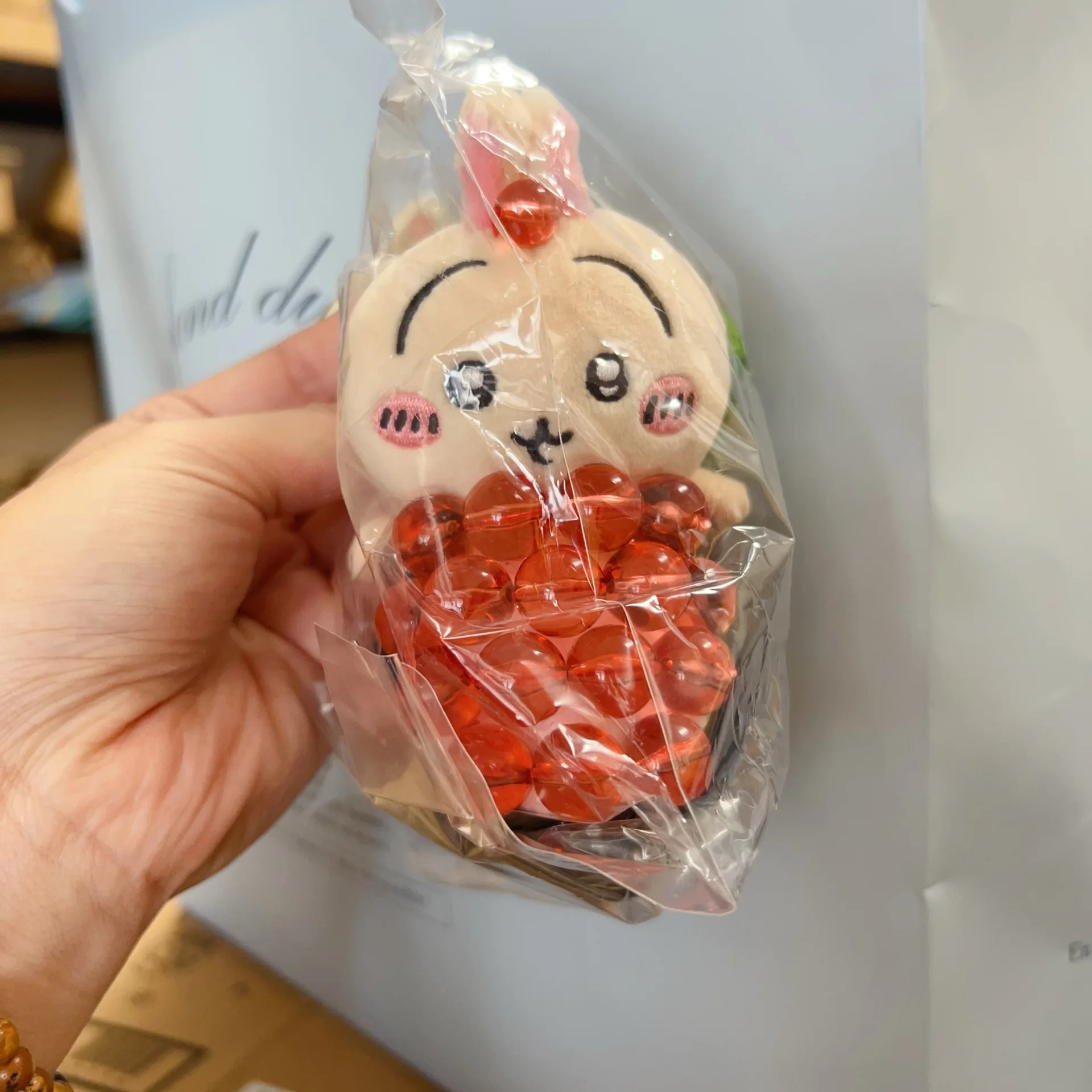 es tan tierno mi lindo usagi, es algo pesado pero es por el tamaño y las bolitas, es muy suave, irá definitivamente en mi bolso